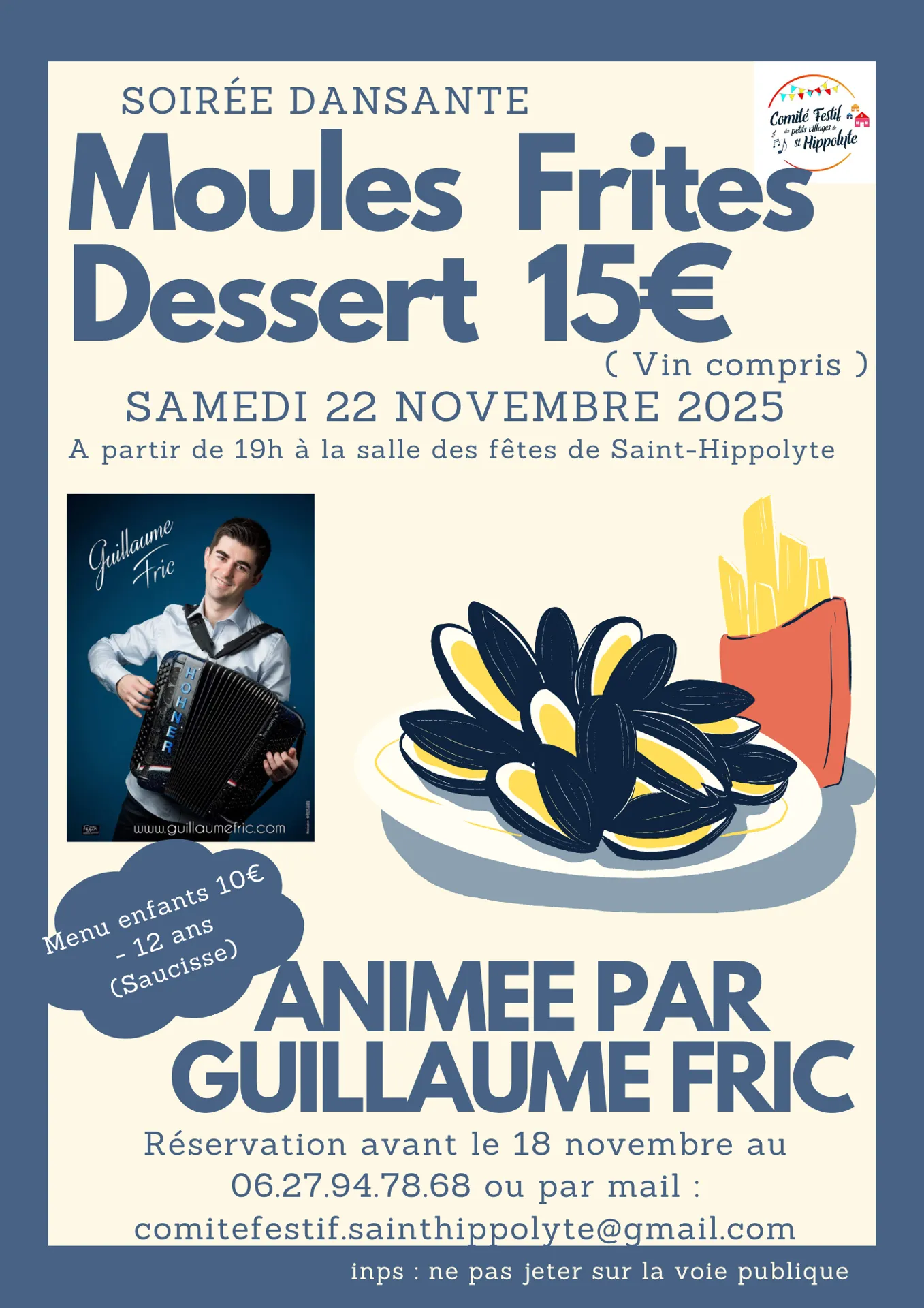 Soirée dansante « moules frites » animée par Guillaume Fric