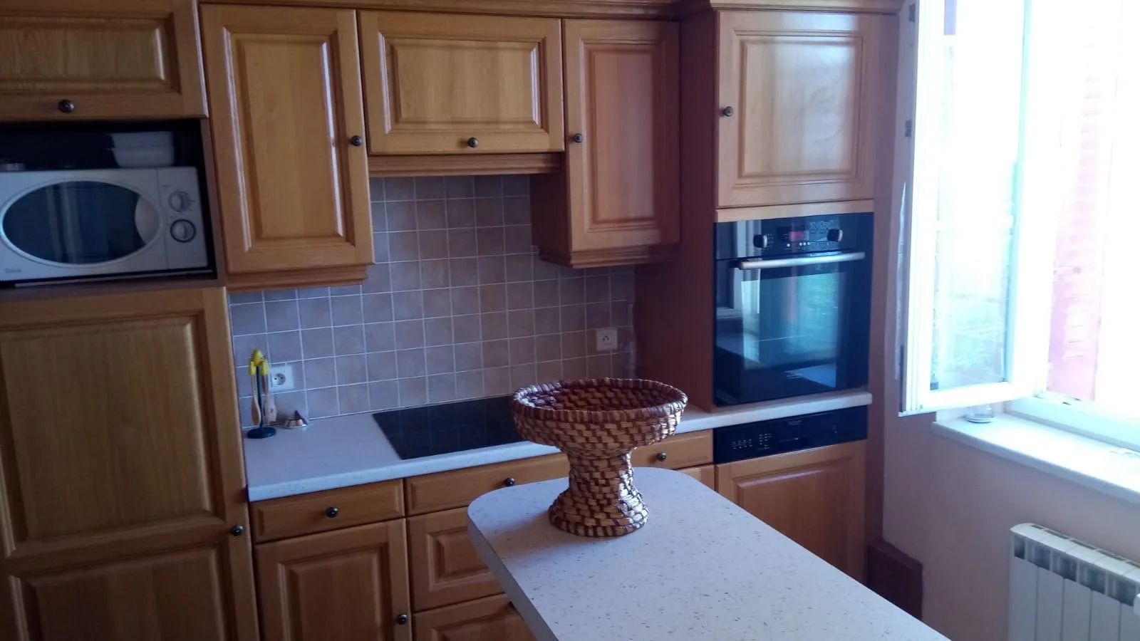 1er étage : cuisine équipée (micro-ondes, lave-vaisselle, lave-linge). Salon/salle à manger (canapé-lit, TV). 2 chambres (1 lit en 140, 2 lits en 90). Salle de bain, WC.