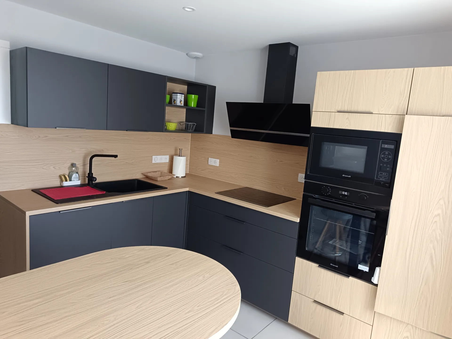 Rez-de-chaussée : cuisine équipée (plaque induction, four électrique, micro-ondes, grille pain, cafetière, lave-vaisselle, frigo). Coin repas et salon avec tv, connexion internet WIFI, wc indépendant.