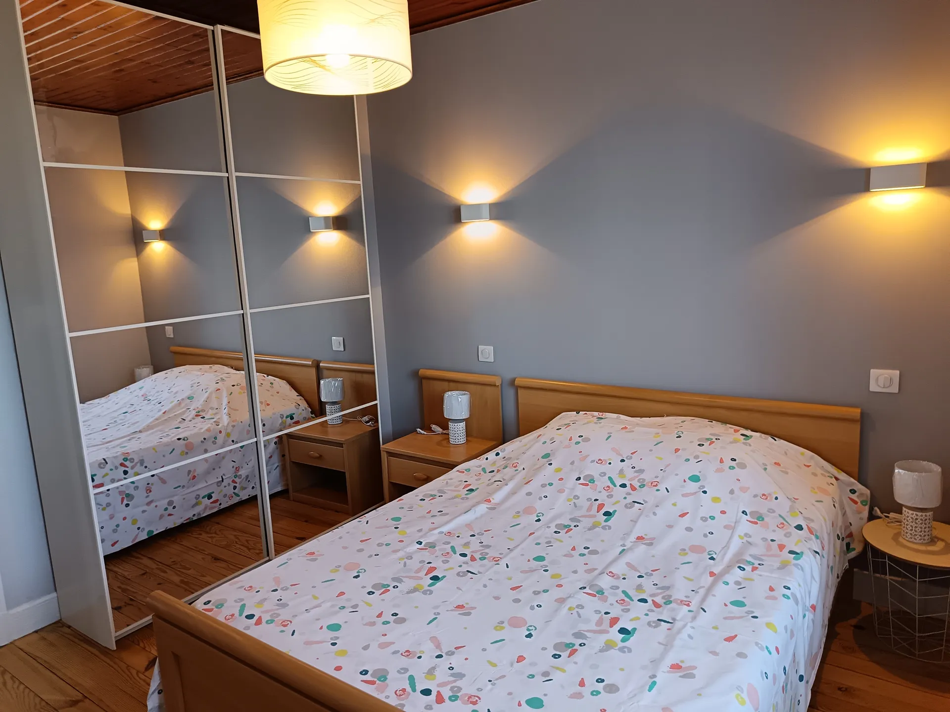 Etage : le palier dessert 3 chambres : 1 chambre avec 1 lit 160, 2 chambres avec 1 lit 140 à chacune, salle d’eau et wc.